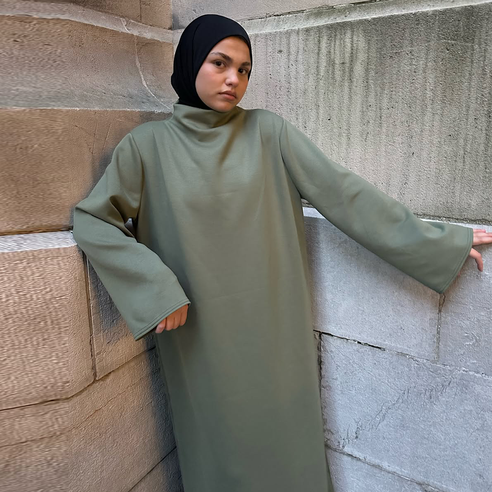 Robe longue à col roulé au style minimaliste et élégant, parfaite pour une tenue moderne et confortable. Sa coupe ample et fluide offre une grande liberté de mouvement tout en conservant une silhouette raffinée.